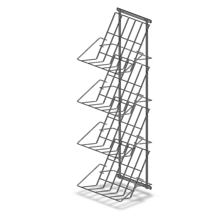 Торговий стенд спроектований і розроблений для настінного виставки та продажу книг, преси та іншої поліграфії формату А4. Зазначений дисплей зручно розмістити в магазині, книжкової крамниці або іншому торговельному закладі. Сітчасту вітрину можна використовувати для розміщення журналів,дитячої літератури або іншої поліграфічної продукції для формату А4 і менше.