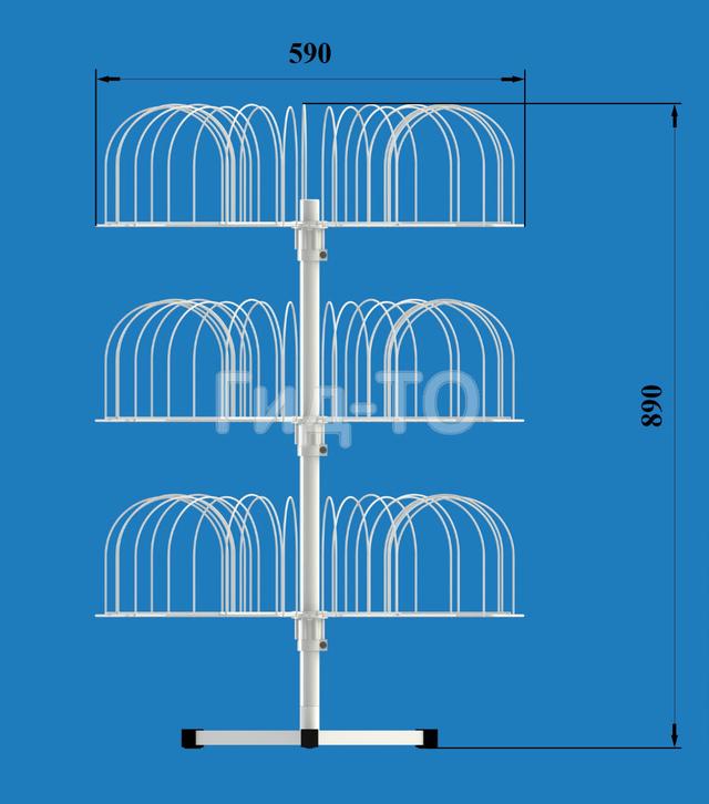 Вертушка для в'язаних шапок являє собою розбірну конструкцію на 3 рівня дисплеїв шапкових кронштейнів. Кожен рівень кріпиться до стійки і легко обертається за допомогою пластикової фурнітури. Рівні можна переміщати по висоті, або замінити їх на дисплеї з круглими кронштейнами під кепки. Можливо замовити потрібну вам кількість дисплеїв для комплектації стійки додатковими ярусами або для того, щоб доповнити вже наявні у вас стійки